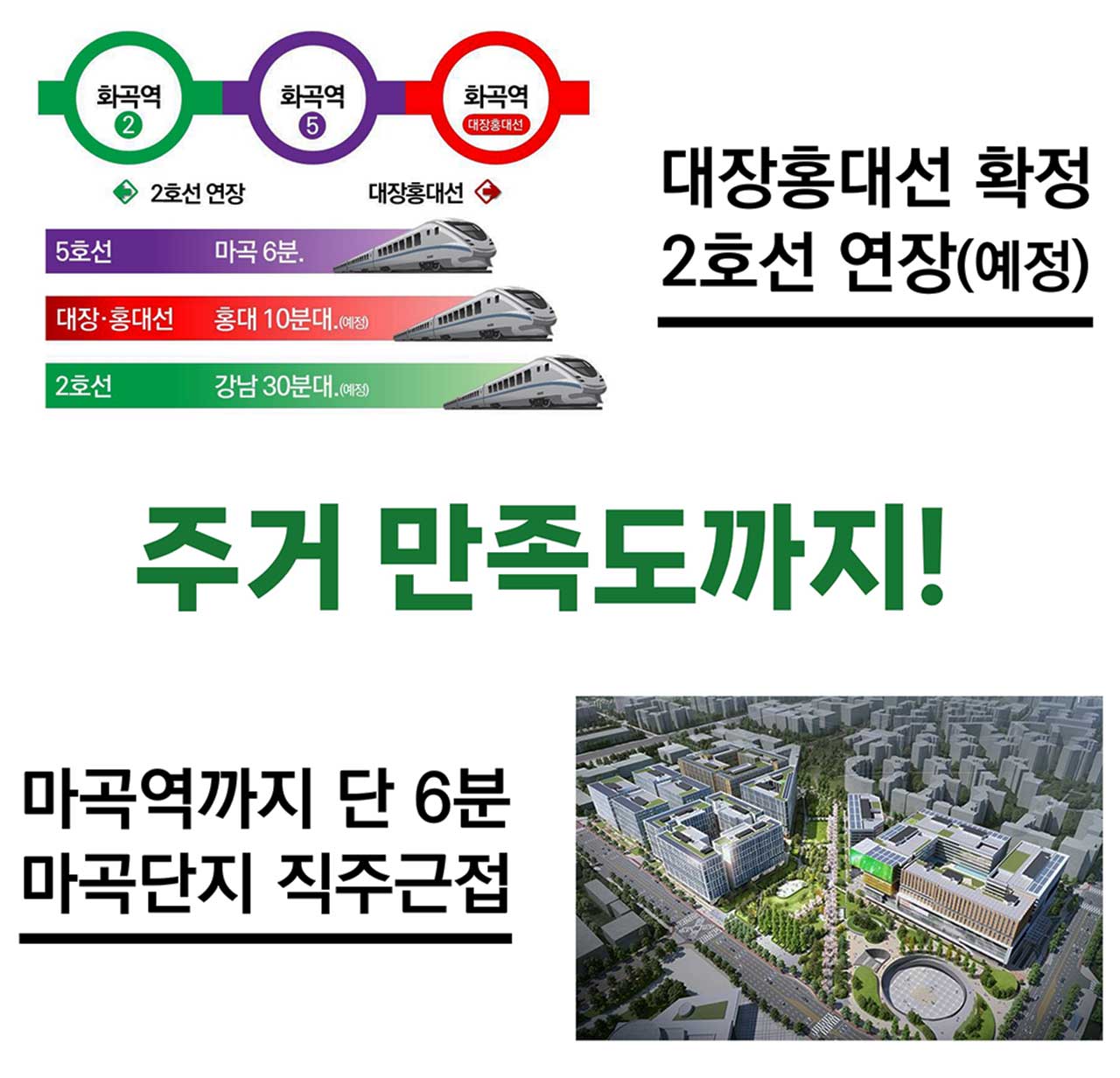 5호선 화곡역, 공항대로, 남부순환로, 경인고속국도 등 편리한 교통환경